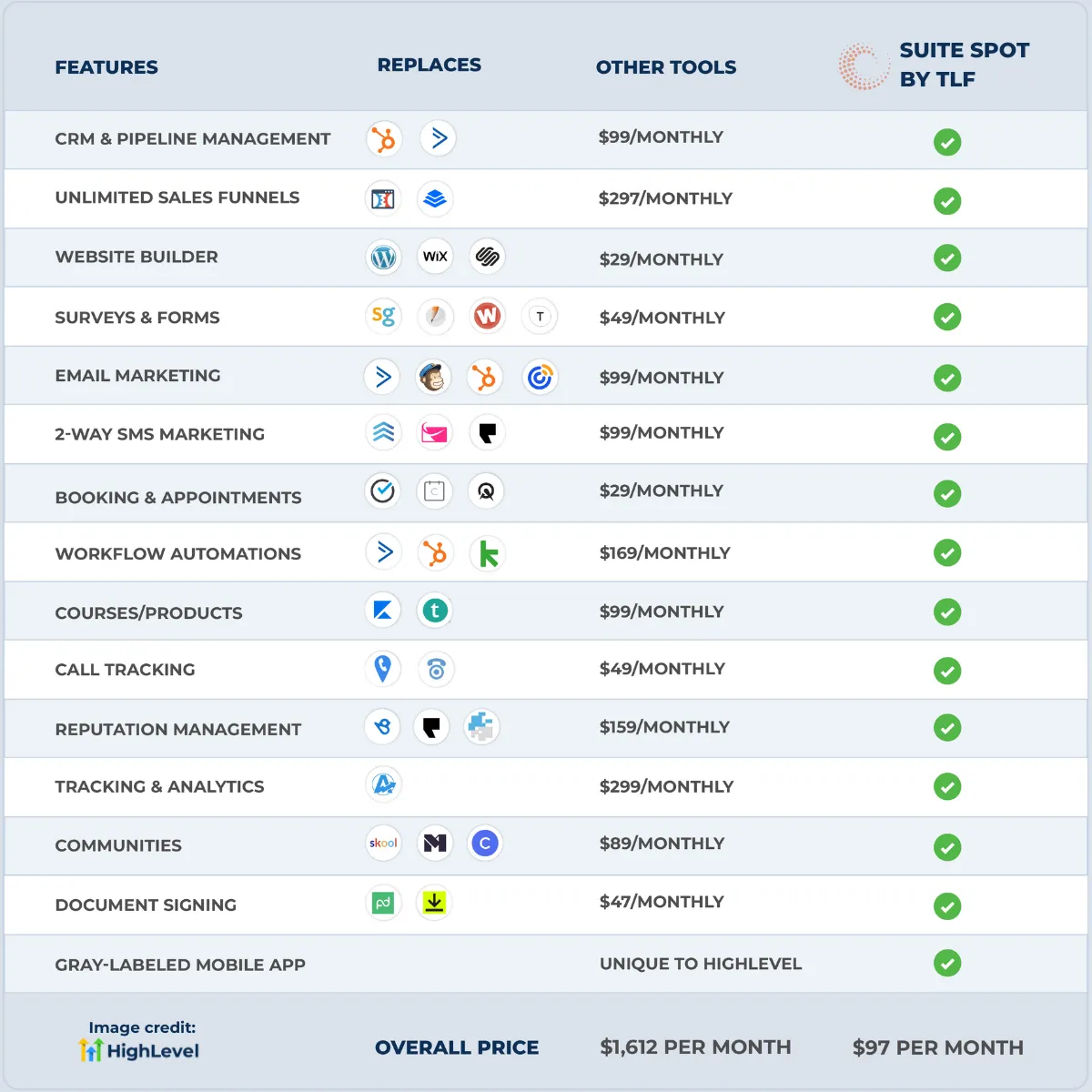 With The Suite Spot, you no longer need to juggle multiple subscriptions. Our platform can replace: